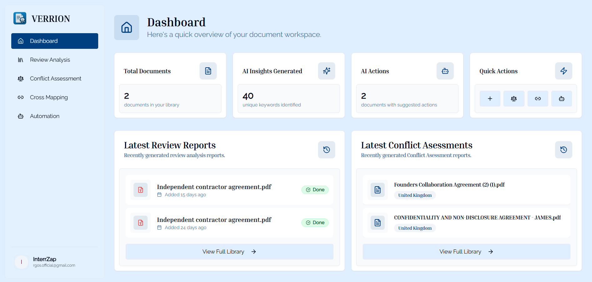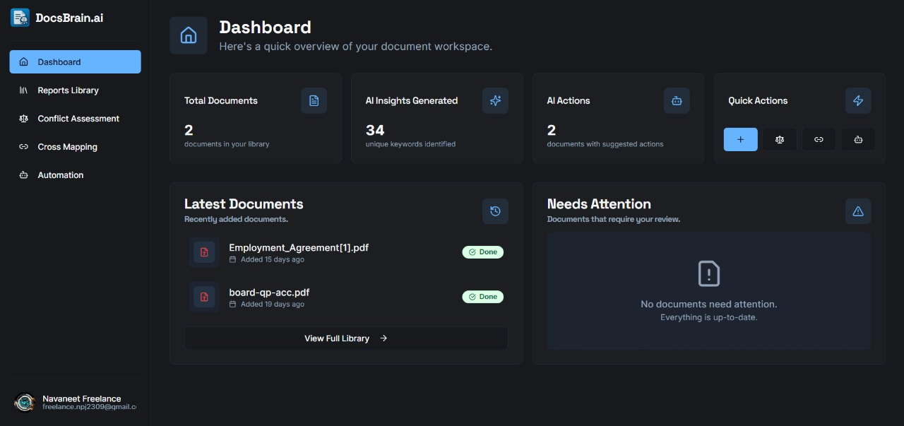 - Document Library: Browse, search, and manage all your document reports with filtering and sorting options.